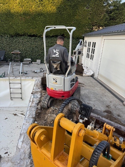- 1 minigraver (1,2 ton) met een minimale rupsbreedte van slechts 78 cm